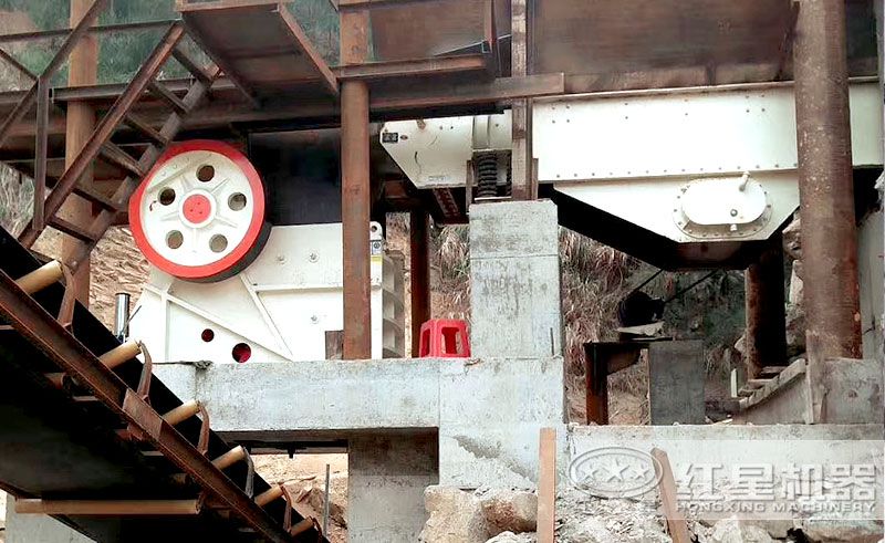 在試機之前,紅星廠家選用大石頭作為主要的加工原料,當插上電時,物料均勻的落進57顎破深腔,然后在深腔中進行破碎處理,經過幾分鐘的試驗,我們發現,57顎破最小的出料粒度與實際作業相符,并且破碎力度強,作業效率非常高。